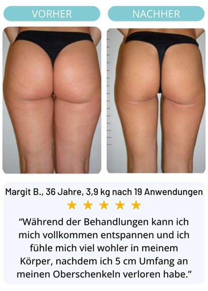 Mittels Radiofrequenz werden die Fettzellen in Schwingung versetzt. Durch Reibung lösen sich Stoffwechsel-Abbauprodukte, Fette schmelzen und sie können dünnflüssig ausgeschieden werden.